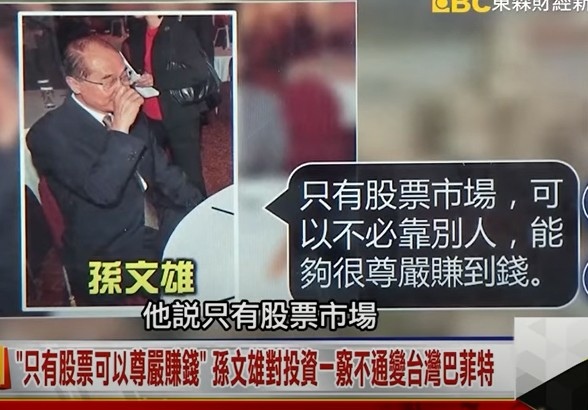 一開始,幫邱永漢默默打工的孫文雄,對經濟、股市一竅不通,後來他認為「只有股票市場,可以不必靠別人,能夠很尊嚴賺到錢。」因此,孫文雄不僅憑藉著自己閱讀自學,也從邱永漢身上學習趨勢分析,先在港股97回歸前的低潮入市,大賺一筆,接著2000年深滬股市崩跌,大家逃之夭夭,孫文雄卻從容逢低買進,大賺好幾倍。在港、陸股獲利後,他也布局台股,媒體曾形容他「個人資產近百億元」。