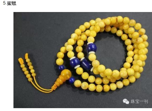 (8)琥珀:琥珀、蜜蠟從地質學上說是同一種東西,透明的叫琥珀,不透明的叫蜜蠟。蜜蠟在藏傳佛教尤其重視它,用來做念珠和護身符,有強大的辟邪趨吉功效,黃色蜜蠟還可以催財旺財。