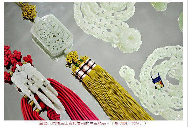 韓國江原道玉山家販賣部的白玉飾品。(孫明國/大紀元)