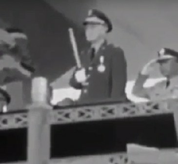 1963年留德的蔣緯國軍裝為德式褲及長靴手持臨時權杖