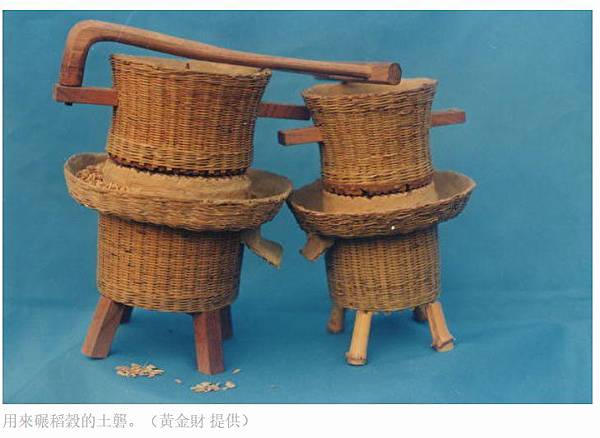 用來碾稻穀的土礱。(黃金財 提供)