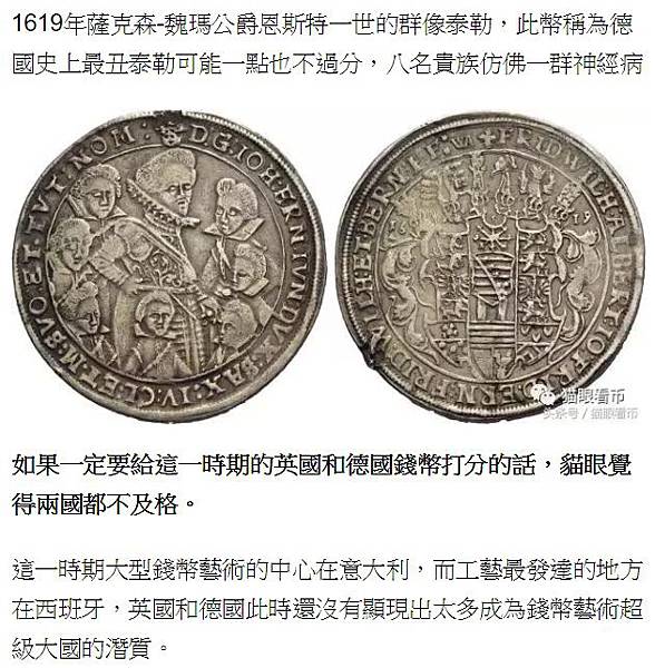 1619年薩克森-魏瑪公爵恩斯特一世的群像泰勒,此幣稱為德國史上最丑泰勒可能一點也不過分,八名貴族仿佛一群神經病