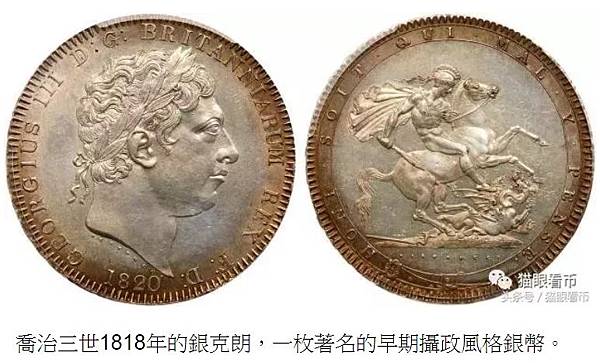 1887年克朗精製幣,如前文所言,背面的聖喬治屠龍設計最早出現在1817年喬治三世的金索維林上