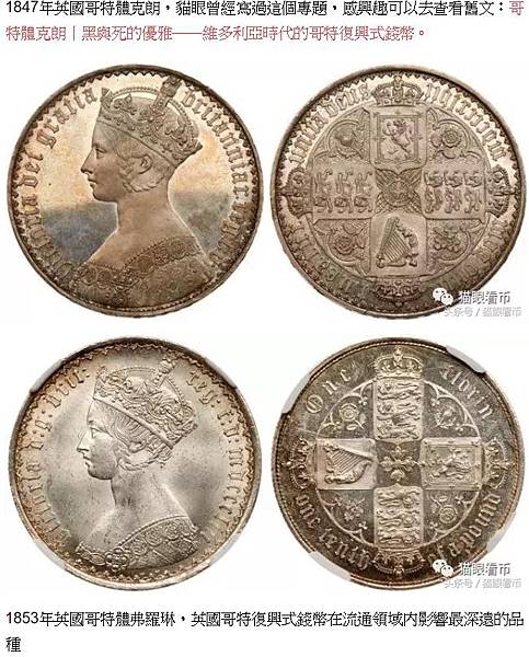 1853年英國哥特體弗羅琳,英國哥特復興式錢幣在流通領域內影響最深遠的品種