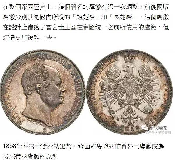 1858年普魯士雙泰勒銀幣,背面那隻兇猛的普魯士鷹徽成為後來帝國鷹徽的原型