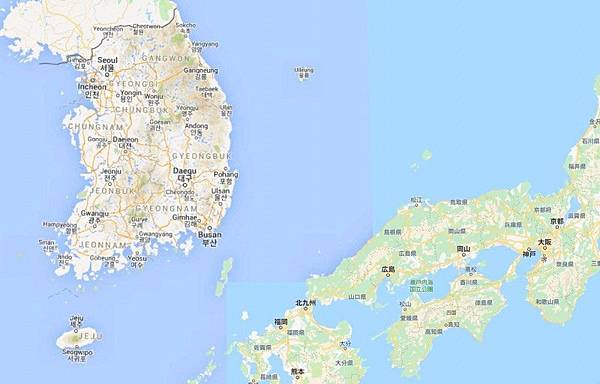 日韓兩國長年因領土劃分問題以及民族、歷史矛盾而有衝突。(圖擷自Google maps)