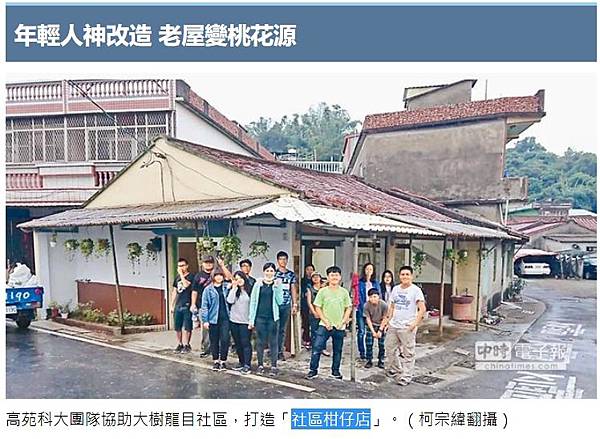 大樹這處老雜貨店「柑仔店」座落於社區中心,昔日販售油、米、鹽等民生用品及零食,是老一輩居民兒時回憶,但隨著時代演變,風華退去。經高苑科大團隊改造為社區柑仔店,販售玉荷包、鳳梨等在地農產,賦予服務鄉里新生命。