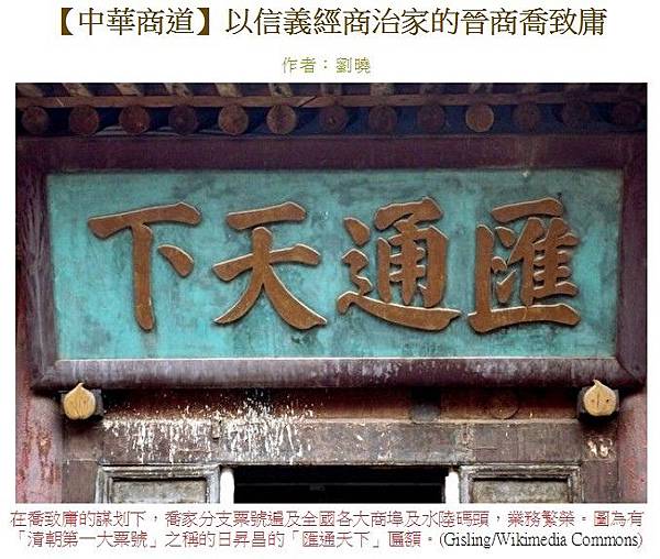 更新: 2019-06-20 9:48 PM 標籤: 中華商道, 喬致庸, 晉商