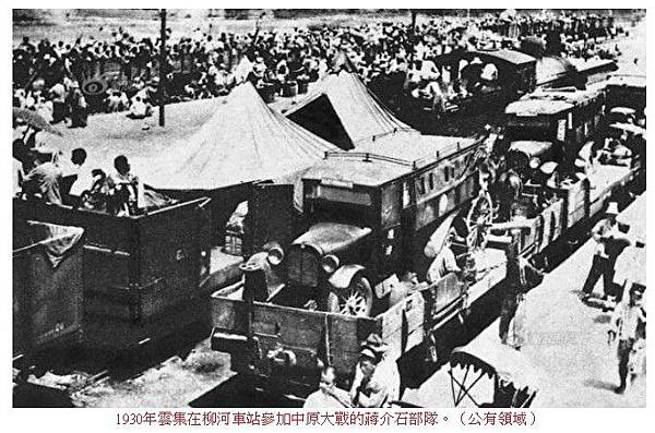 1930年雲集在柳河車站參加中原大戰的蔣介石部隊。(公有領域)