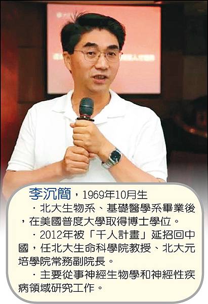 李沈簡是2012年被中組部「千人計劃」延招回國,任北大生命科學院教授、北大元培學院常務副院長。