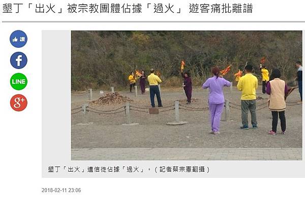 分享墾丁「出火」被宗教團體佔據「過火」 遊客痛批離譜到Facebook 分享墾丁「出火」被宗教團體佔據「過火」 遊客痛批離譜到Line 分享墾丁「出火」被宗教團體佔據「過火」 遊客痛批離譜到Google+
