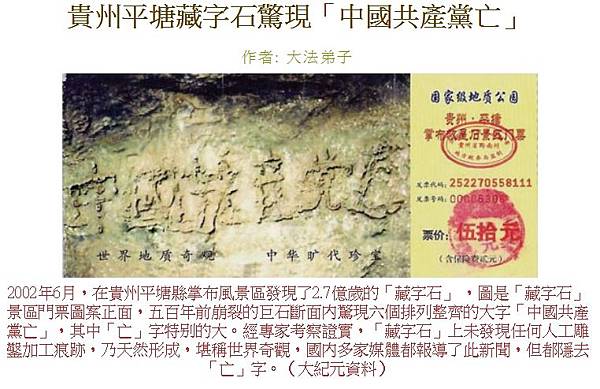 貴州平塘藏字石驚現「中國共產黨亡」 | 大紀元 - https://goo.gl/vx1ais
