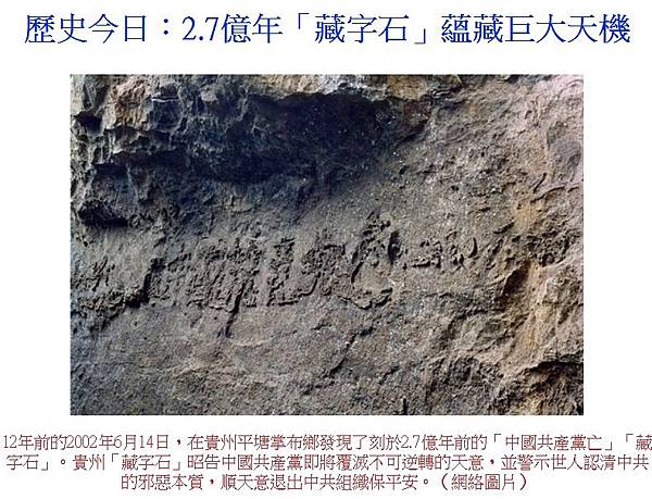 歷史今日:2.7億年「藏字石」蘊藏巨大天機 | 三退 | 婆羅花 | 法輪大法 | 大紀元 - https://goo.gl/kni23u