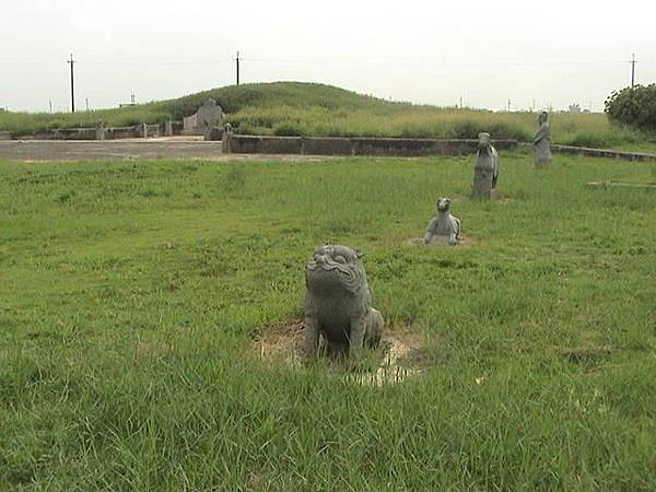 墓埕前左右有青斗石雕翁仲與石獸(石馬、石羊、石虎各一對)