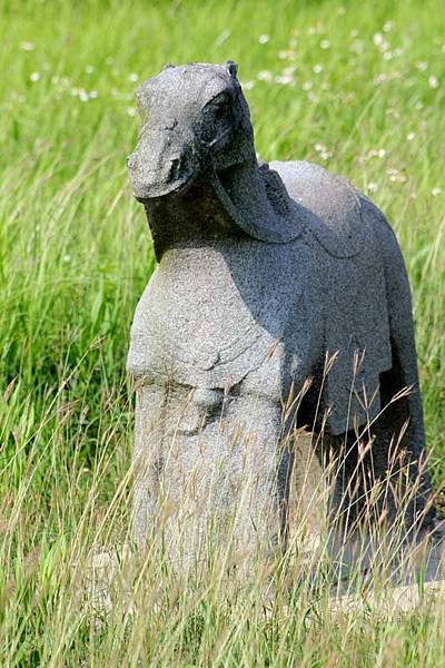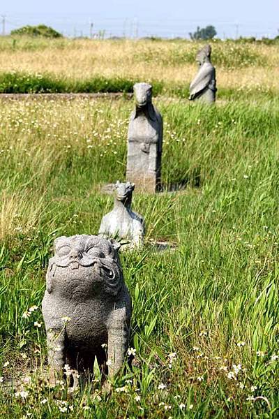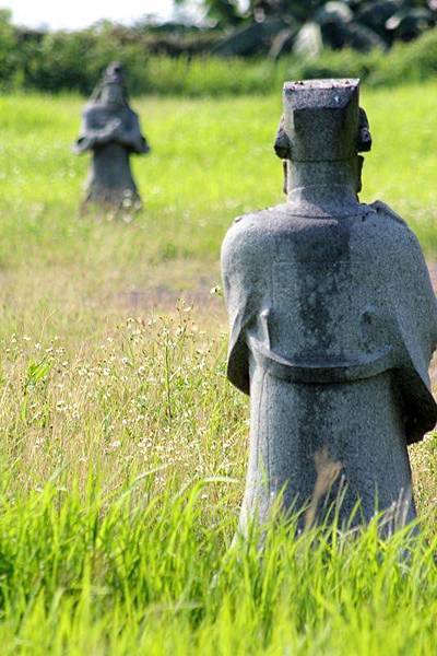 石獸共八座,對稱而立,文官溫文儒雅、武將英姿挺拔。