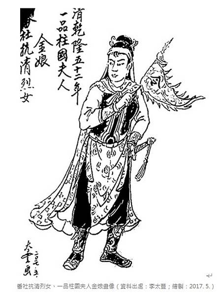 番社抗清烈女、一品柱國夫人金娘畫像(資料出處:李太豐;繪製:2017. 5.)