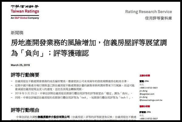#標準普爾 #中華信評 #信義房屋 #不動產開發