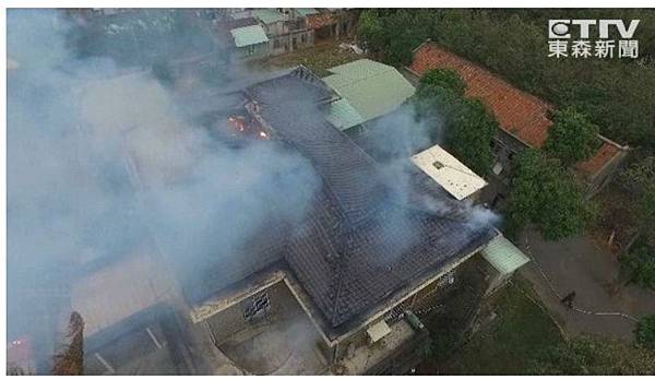 縣消防局勤指中心表示,火勢疑從透天厝2樓傳出,當時2樓有84歲徐姓屋主、妻子、媳婦和1名女外勞,一度受困在陽台,經消防人員陸續將人平安救出;總共出動12車29人救火,但因木造建材,加上居家易燃物多,火勢延燒迅速,火苗仍不斷自2樓窗戶竄出。