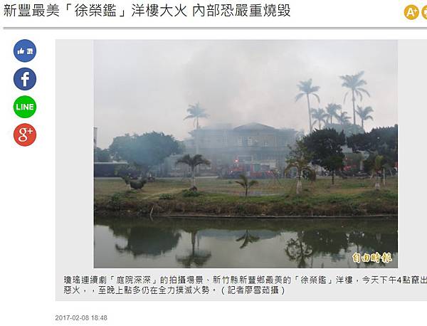 分享新豐最美「徐榮鑑」洋樓大火 內部恐嚴重燒毀到Facebook 分享新豐最美「徐榮鑑」洋樓大火 內部恐嚴重燒毀到Line 分享新豐最美「徐榮鑑」洋樓大火 內部恐嚴重燒毀到Google+