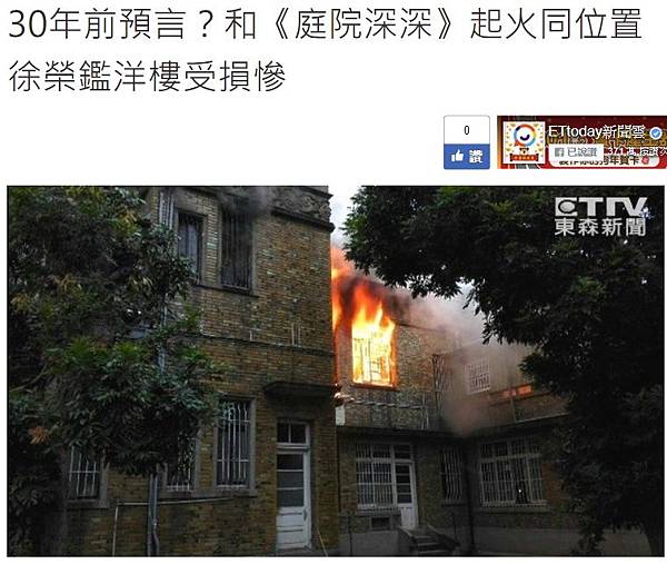 原文網址: 30年前預言?和《庭院深深》起火同位置 徐榮鑑洋樓受損慘 | ETtoday社會 | ETtoday新聞雲