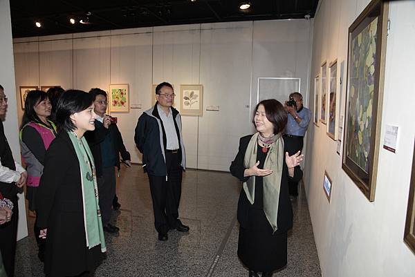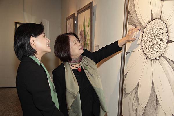 鄭麗君參觀翁金珠國策顧問鋼筆畫展作品-菊花。