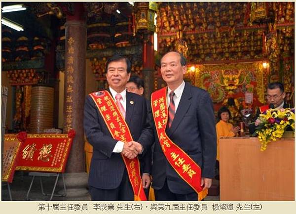 第十屆主任委員 李成業 先生(右),與第九屆主任委員 楊燦煌 先生(左)