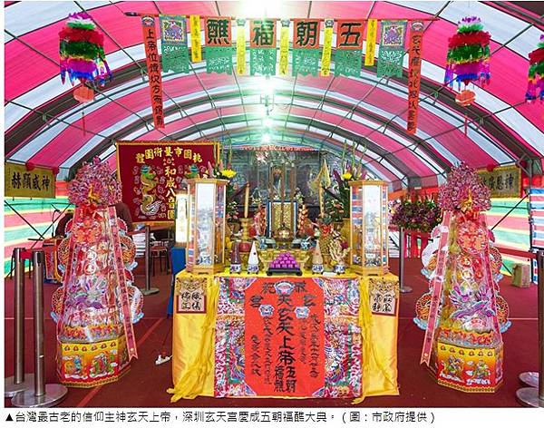 ▲台灣最古老的信仰主神玄天上帝,深圳玄天宮慶成五朝福醮大典。(圖:市政府提供)
