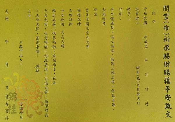 疏文者,信徒對眾神疏通之意,古代時群臣論諫之總名也。