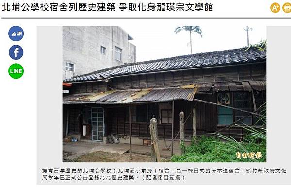 北埔公學校宿舍列歷史建築 爭取化身龍瑛宗文學館 - 生活 - 自由時報電子報 http://tinyurl.com/y4spea44