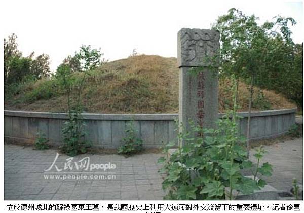 不幸的是,歸國途中,蘇祿東王在德州病逝,葬於德州城北二里處(現德州北營村)。