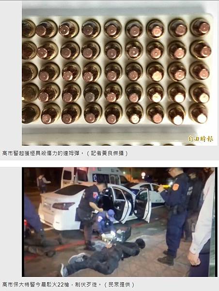 近10分鐘後,特警擔心歹徒會開槍反擊逃竄,攻堅駁火22槍壓制歹徒,車上3名歹徒陸續被逼下車,警方將其上銬,並在車上搜出2把衝鋒槍、4支手槍、戰衍背心等,起獲305顆子彈之中,有極具殺傷力的100顆達姆彈。