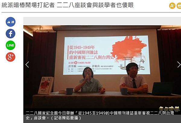 分享統派暗樁鬧場打記者 二二八座談會與談學者也傻眼 到Facebook 分享統派暗樁鬧場打記者 二二八座談會與談學者也傻眼 到Line 分享統派暗樁鬧場打記者 二二八座談會與談學者也傻眼