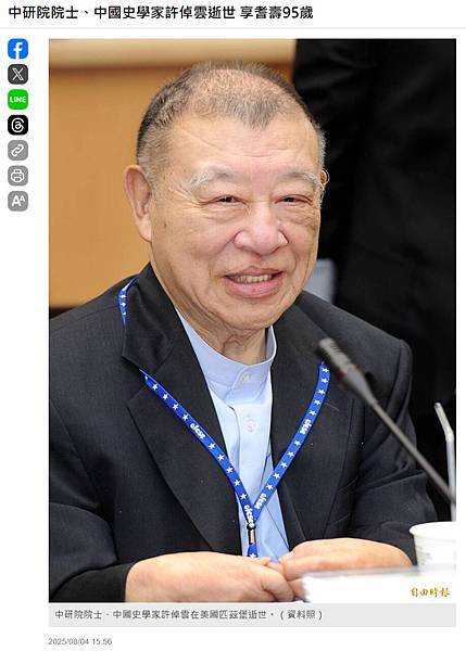 中研院院士、中國史學家許倬雲逝世 享耆壽95歲 - 生活 - 自由時報電子報