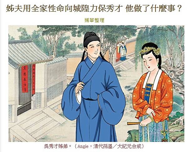 清朝咸豐年間,宜興地區有一位姓吳的秀才,天資聰敏,文學出眾,但屢次考試都沒有考中。姊夫用全家性命向城隍力保秀才 他做了什麼事? | 夢 | 邪念 | 惡業 | 大紀元 https://bit.ly/3dXs58t