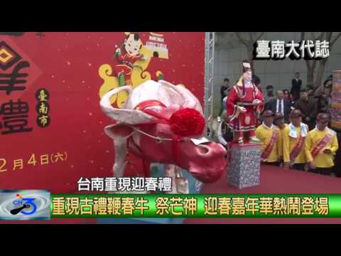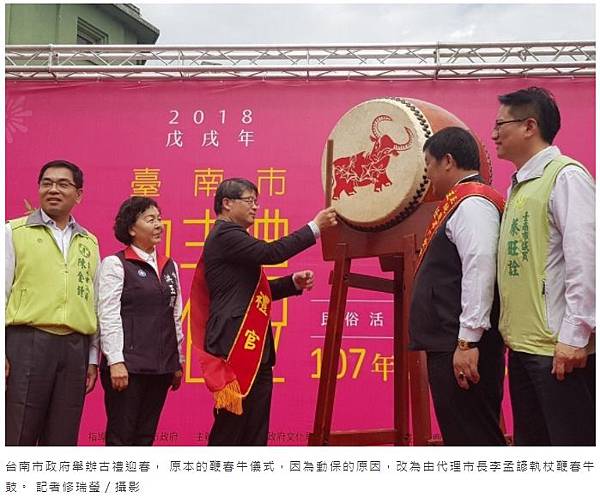 台南市政府舉辦古禮迎春, 原本的鞭春牛儀式,因為動保的原因,改為由代理市長李孟諺...