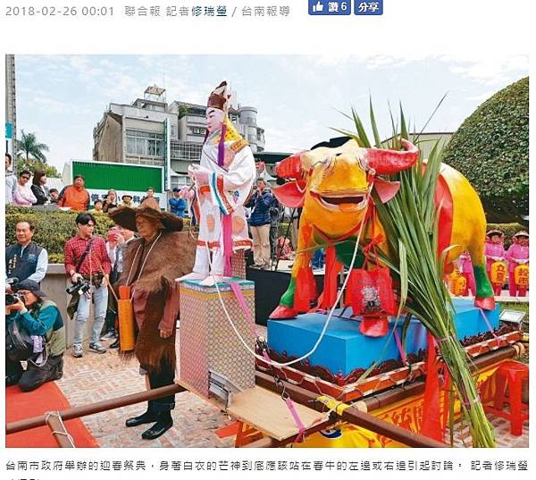 台南市政府舉辦的迎春祭典,身著白衣的芒神到底應該站在春牛的左邊或右邊引起討論。 ...