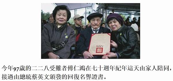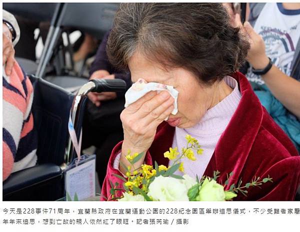 二二八悲劇使父母失去兒子,妻子失去丈夫,兒女失去爸爸,家庭失去支柱,對他們而言是世世代代永難釋懷的傷痛,沒有身受其害的人,別再輕易說「都已經隔了那麼久了」。