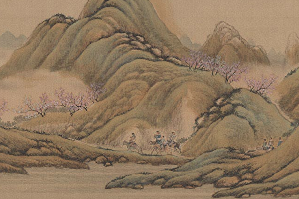 山野间布满了狩猎的男子。有的携带着猎具,有的在马上观赏著景物。图为清画院画十二月月令图二月局部。(台北国立故宫博物院)