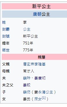 見於《全唐文 卷九百九十六 ○故天水姜夫人墓志銘》。姜氏生於765年或766年,此時,新平公主已經嫁給姜慶初,但在姜氏的墓誌中並未提及生母,姜氏應是公主的庶女。