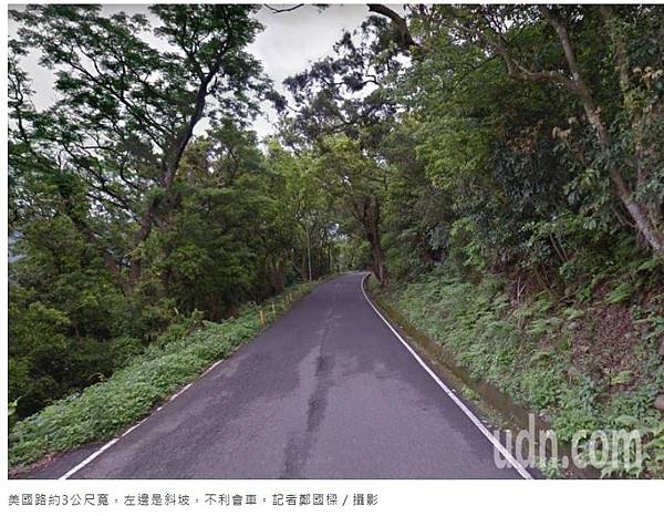 美國路約3公尺寬,左邊是斜坡,不利會車。記者鄭國樑/攝影
