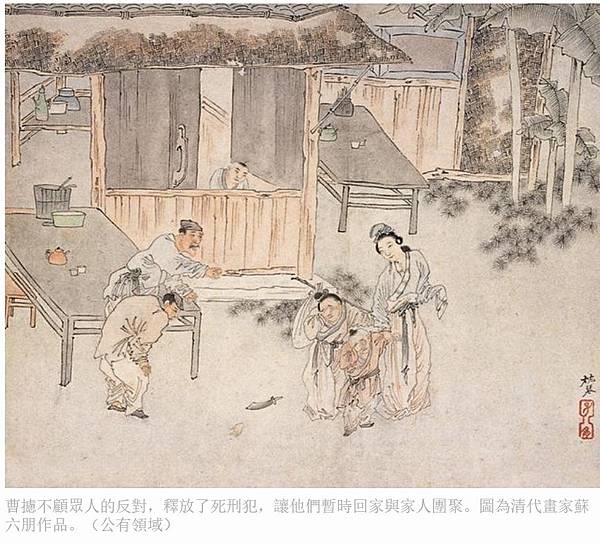 曹攄不顧眾人的反對,釋放了死刑犯,讓他們暫時回家與家人團聚。圖為清代畫家蘇六朋作品。(公有領域)