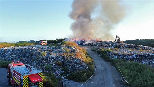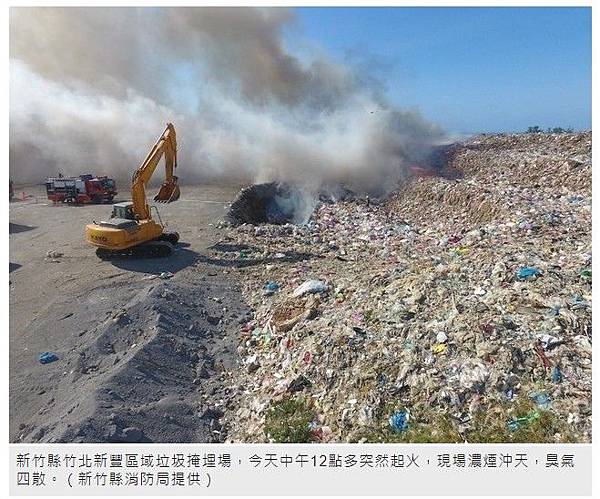新竹縣竹北、新豐區域垃圾掩埋場,今(6日)早再傳出火警,火勢已於下午約3點半撲滅。 (記者廖雪茹翻攝)