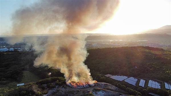 環保局表示,竹北新豐區域垃圾掩埋場占地約9公頃,目前暫置地面上的新舊垃圾約有10萬噸(含2萬打包垃圾),由於沼氣加上氣候乾燥、周邊乾草,每年都會發生數起自燃。