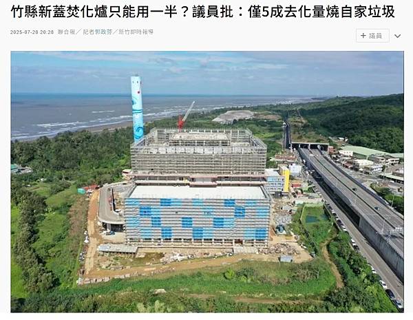 竹縣新蓋焚化爐只能用一半?議員批:僅5成去化量燒自家垃圾 | 桃竹苗 | 地方 | 聯合新聞網 | https://udn.com/news/story/7324/8902175#