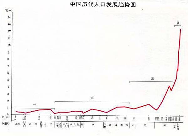 從公元前有明確數字統計開始,中國人口長期在六千萬到七千萬的程度徘徊,直到清乾隆年間首次突破一億,並且此後僅僅百年間居然突破了四億。