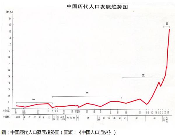 中國歷代人口發展趨勢圖。(圖/澎湃新聞提供)