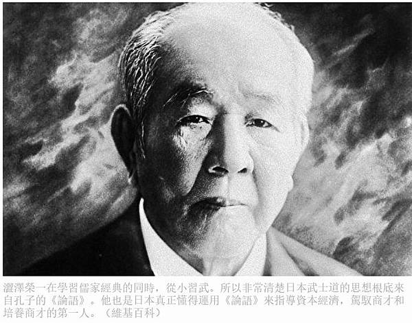 澀澤榮一在學習儒家經典的同時,從小習武。所以非常清楚日本武士道的思想根底來自孔子的《論語》。他也是日本真正懂得運用《論語》來指導資本經濟,駕馭商才和培養商才的第一人。(維基百科)