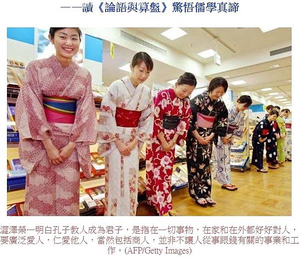 【大紀元2018年02月26日訊】在現代中國人的心中,認為孔孟之道,是落後的老古董,殊不知,日本近代資本經濟的根基,文化理念,價值觀,都是通過澀澤榮一(1840年生, 1931年沒。被譽為日本資本經濟之父,商界之父,企業界之父)終身追隨孔子的教導而建立起來的。也就是說,孔子《論語》的智慧,被日本資本家鉅賈活學活用,成為了指導日本資本經濟、領導各界商才的導師。