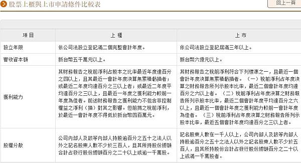 首頁 > 投資人服務 > 股票市場介紹 > 股票上櫃與上市申請條件比較表 - https://goo.gl/S8JRcm