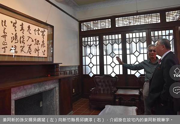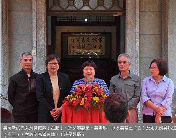 姜家古宅一度流入債權銀行手中,能列入古蹟,甚至峰迴路轉由子孫買回接手管理,「這要感謝許多貴人相助。」姜阿新孫女廖惠慶說,「最關鍵貴人,即是金廣福文教基金會董事長吳東昇。」